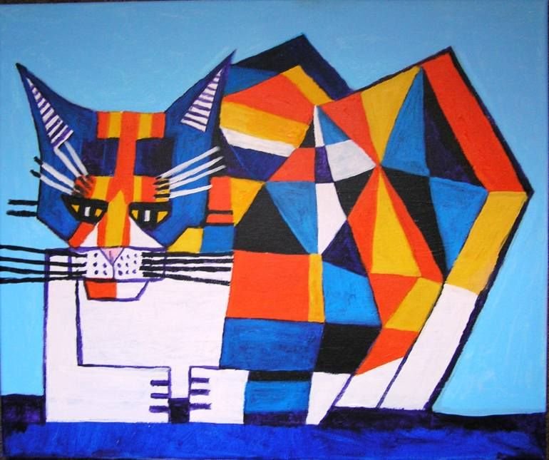 ![Картина кот кубизм]()