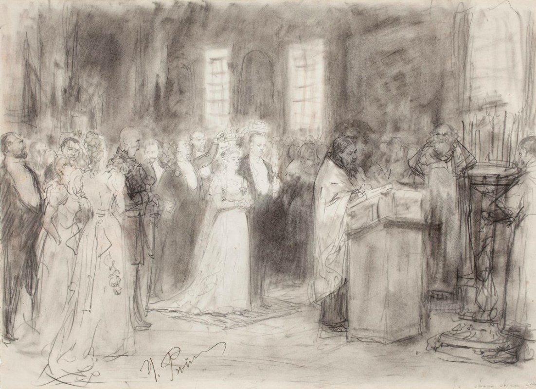 Рисунок "Венчание" – это изумительная художественная композиция, которая передает великолепие и торжество свадебной церемонии. На нем отображается момент прекрасного объединения двух душ, где молодожены обмениваются клятвами любви и верности. Взгляд устремлен в будущее, а все вокруг искрится радостью и счастьем. Яркие краски, мягкие линии и детали, создающие эффект глубины и объема, делают этот рисунок настоящим произведением искусства. Он станет великолепным украшением интерьера и прекрасным напоминанием о самых важных моментах в жизни каждого человека. Рисунок "Венчание" – это источник вдохновения и нежности, который подарит эмоциональное сопереживание и порадует глаза своей красотой и гармонией.