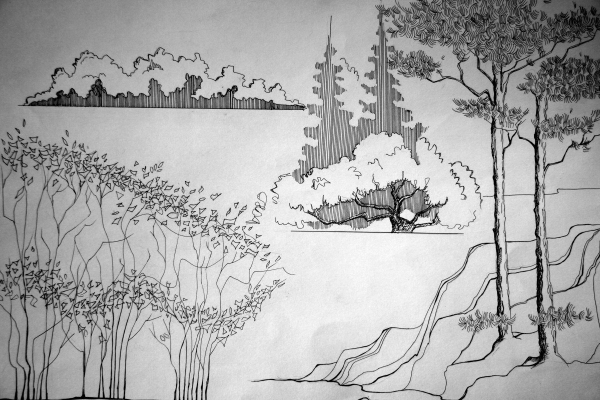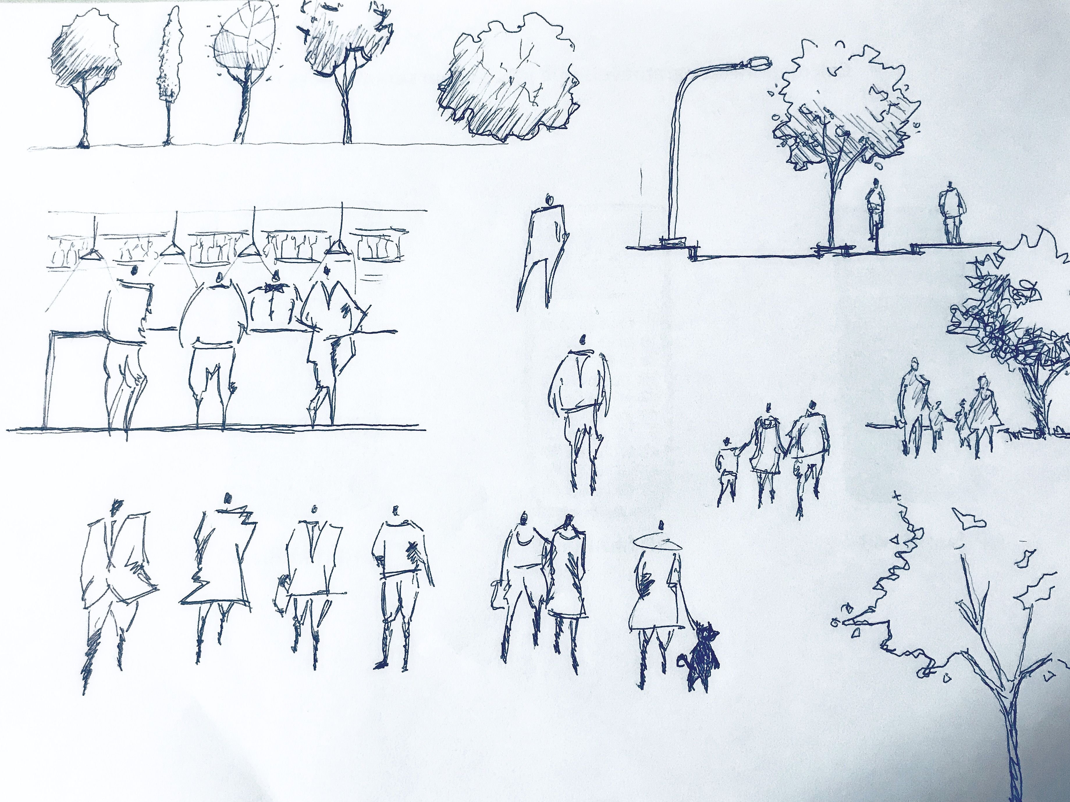 ![Антураж и стаффаж в архитектурной графике композиция]()