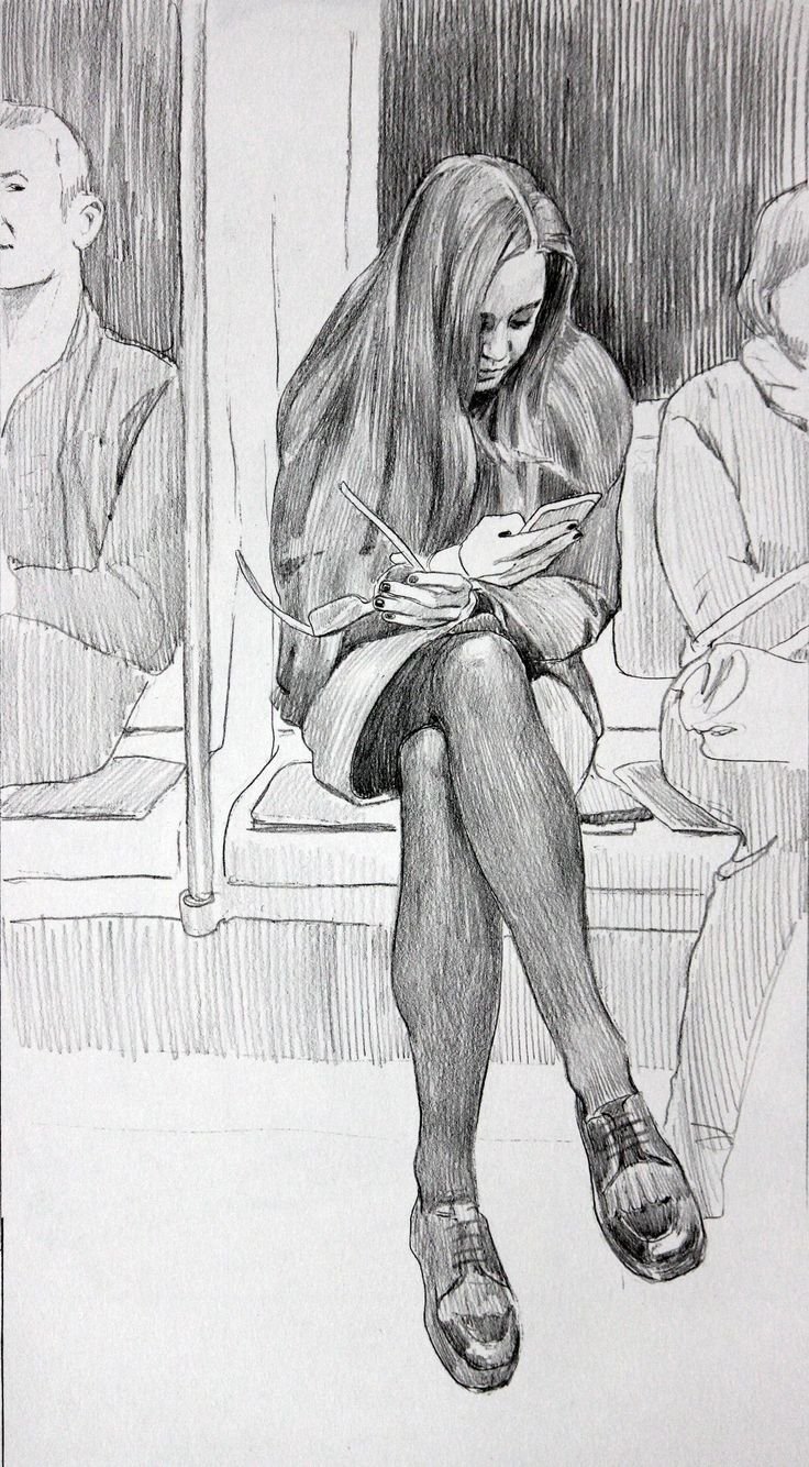 Люди на остановке зарисовки