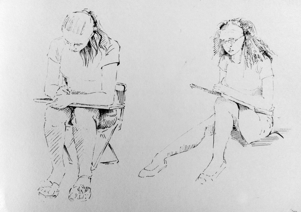 ![Набросок человека на скамейке]()