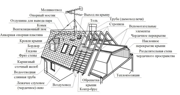 Схема устройства скатной кровли