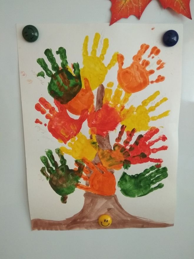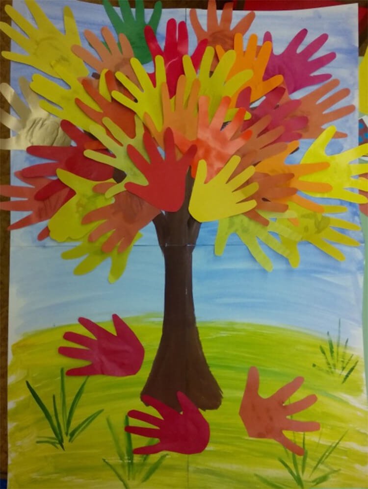 ![Осеннее дерево из ладошек]()