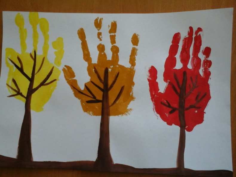 ![Рисование ладошками в младшей группе осеннее]()