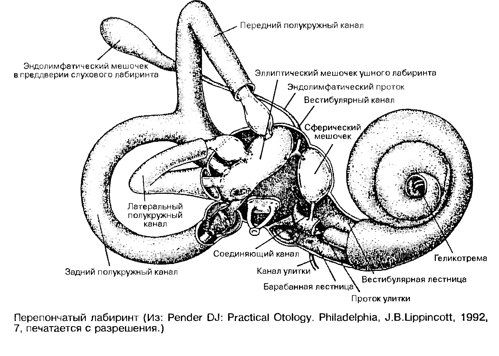 ![Перепончатый Лабиринт внутреннего уха схема]()