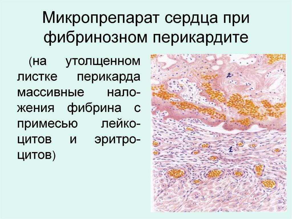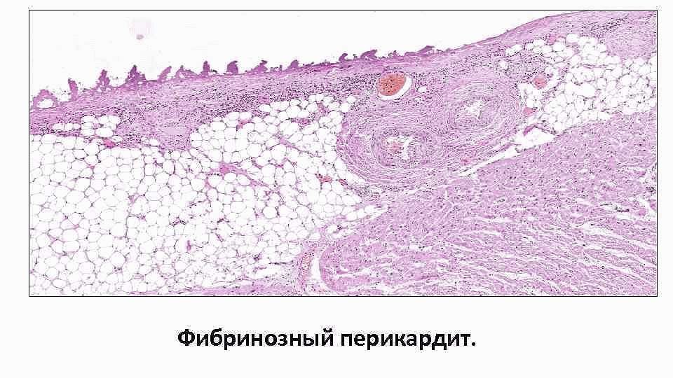 Фибринозный перикардит - окраска гематоксилином и эозином