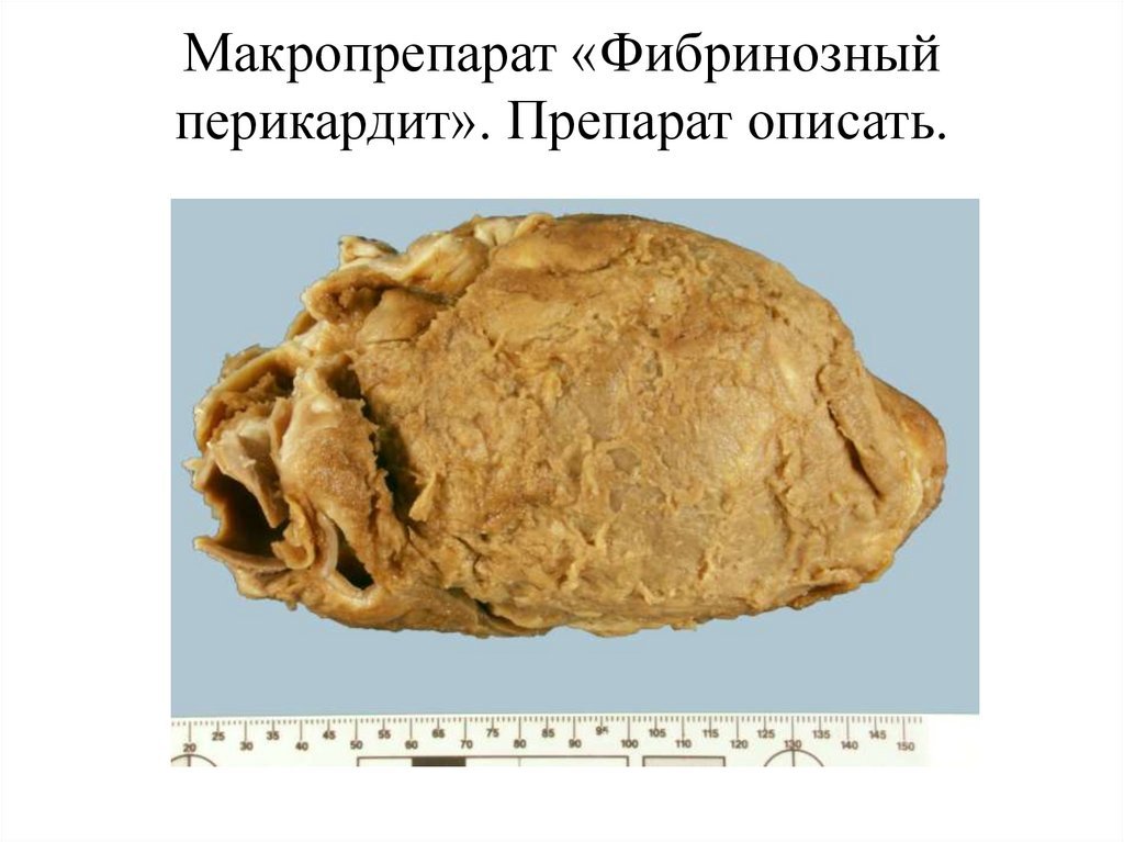 Фибринозный перикардит ("волосатое сердце") макропрепарат
