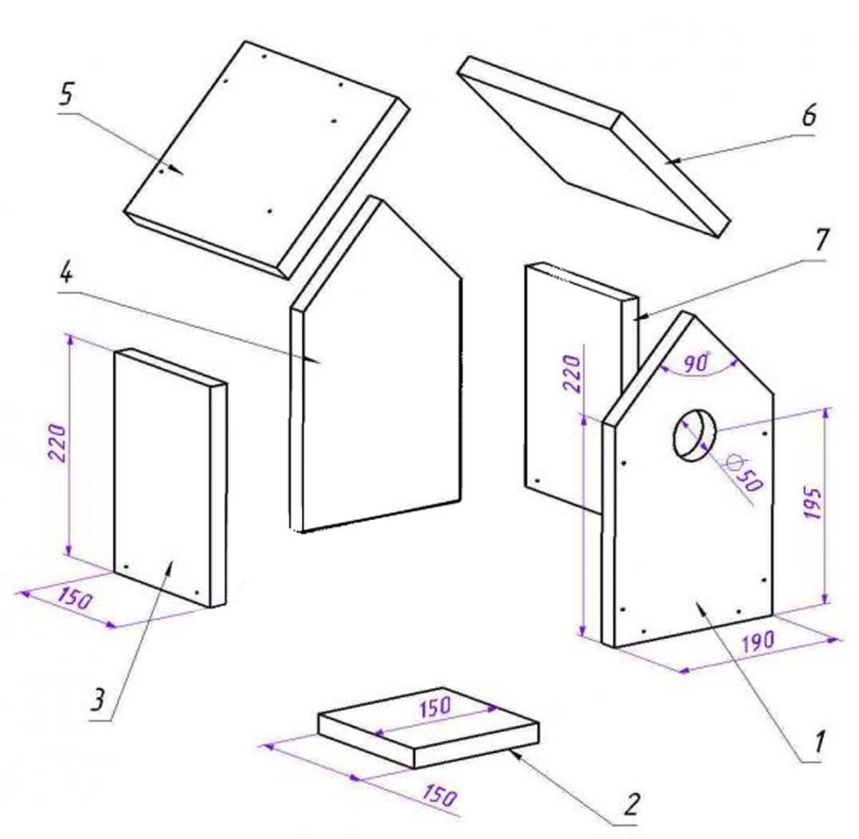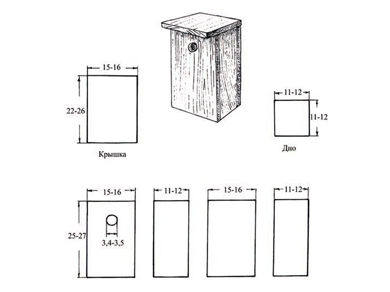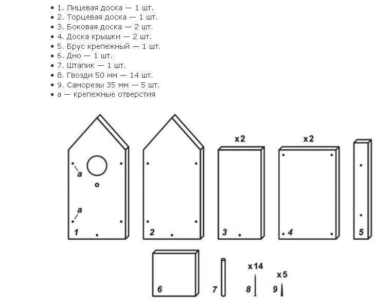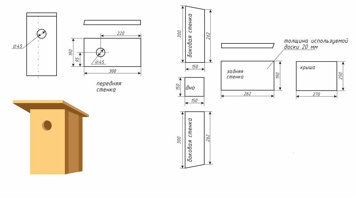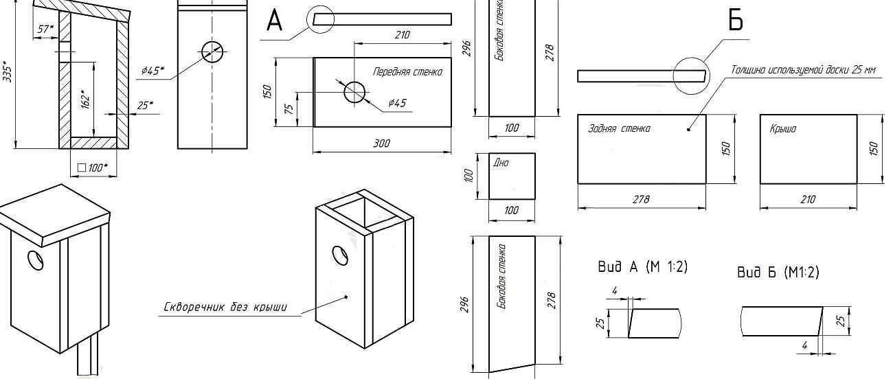 ![Размеры скворечника для Скворцов чертеж из доски]()