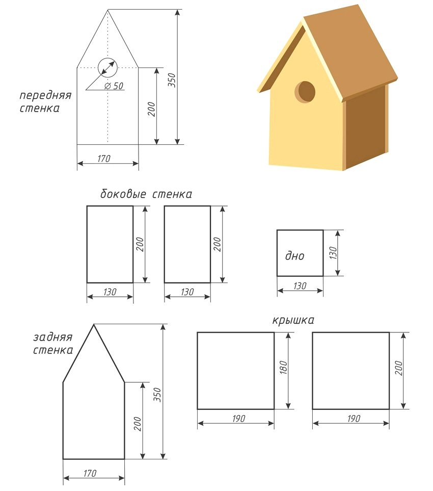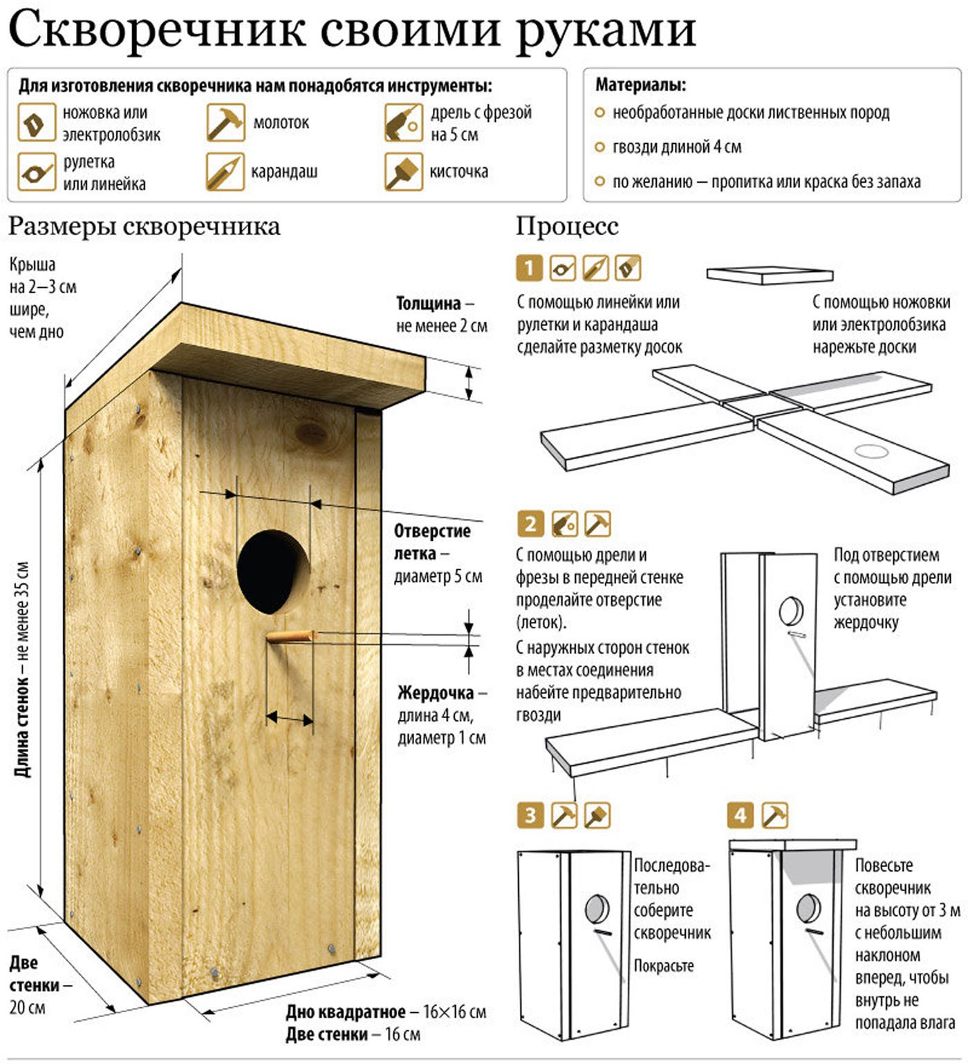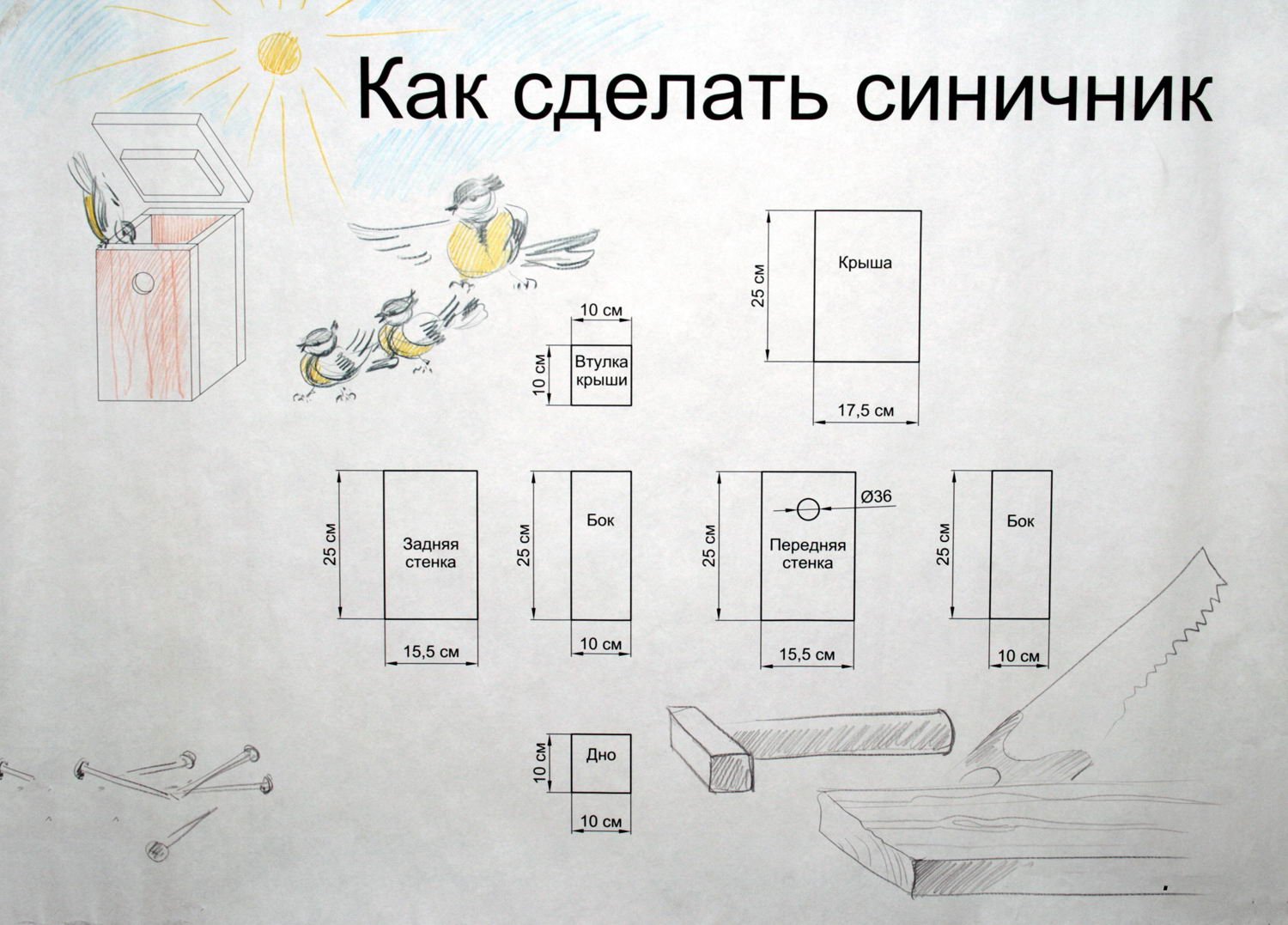![Размеры скворечника для Скворцов чертеж из доски]()