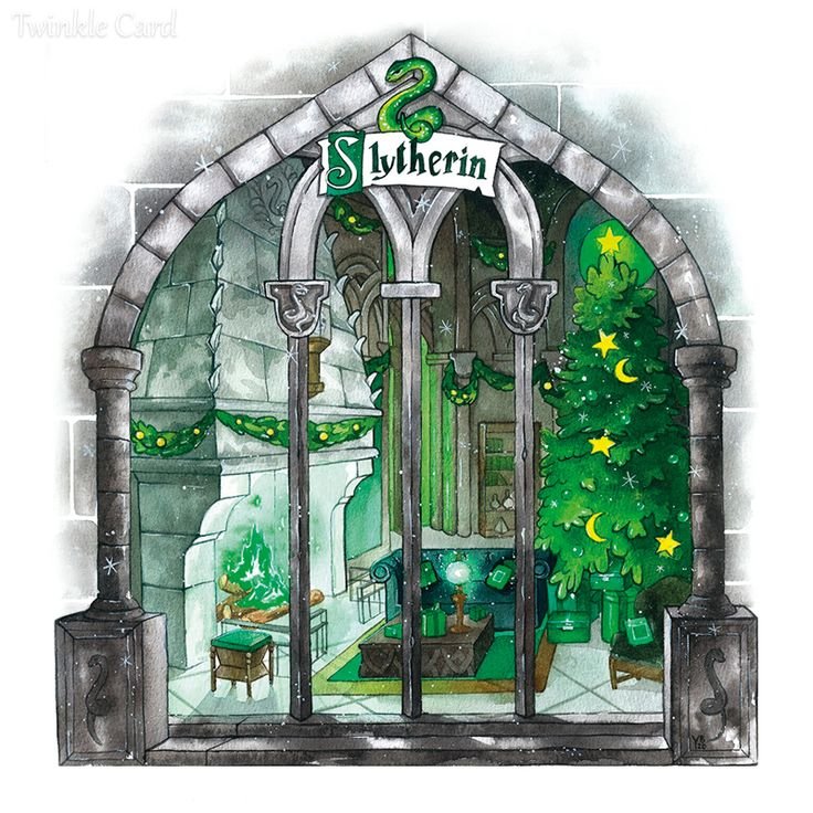 ![Гарри Поттер гостиная Гриффиндора Рождество]()