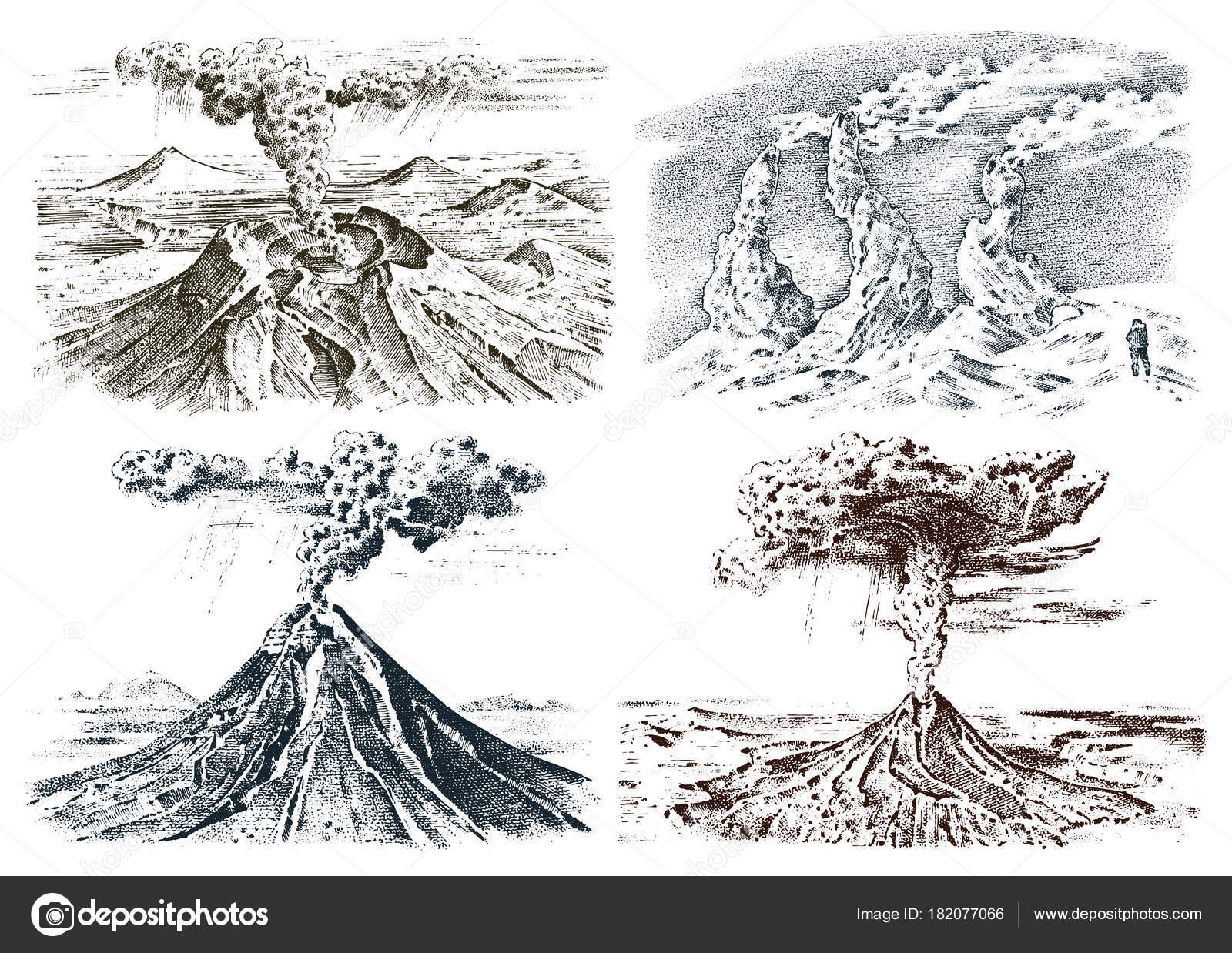 Извержение вулкана рисунок