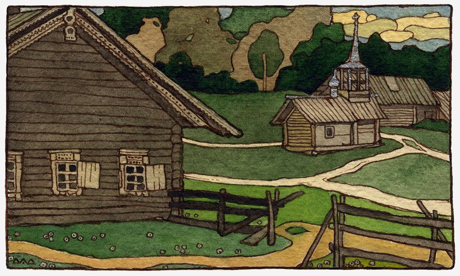 ![Билибин русская деревня]()