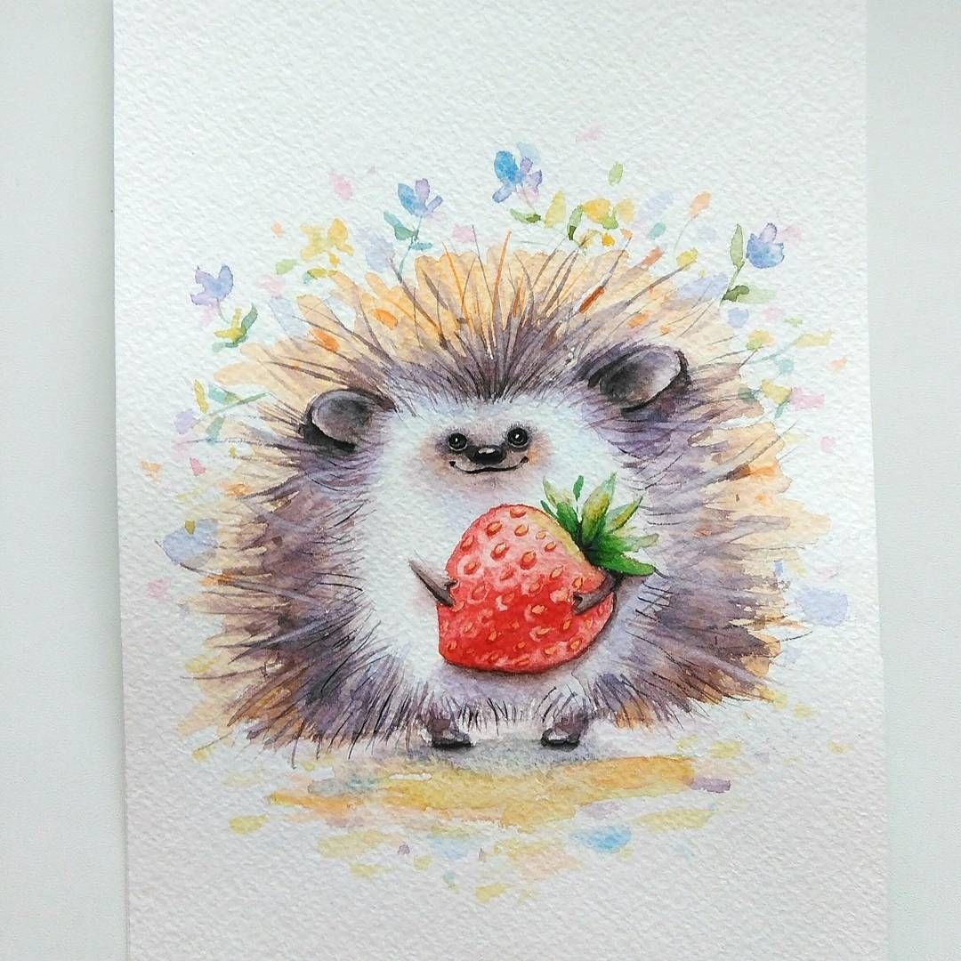 Ежик акварель