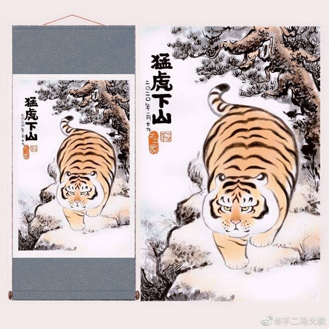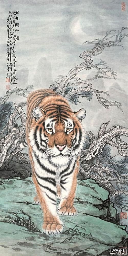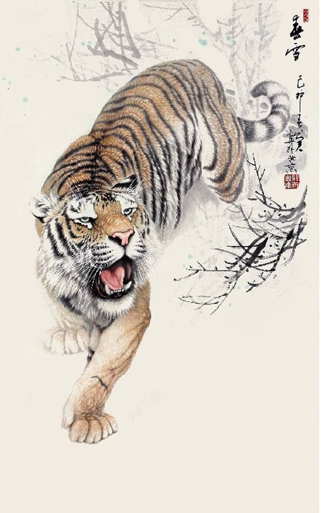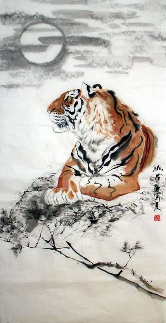 ![Крадущийся тигр китайская живопись]()