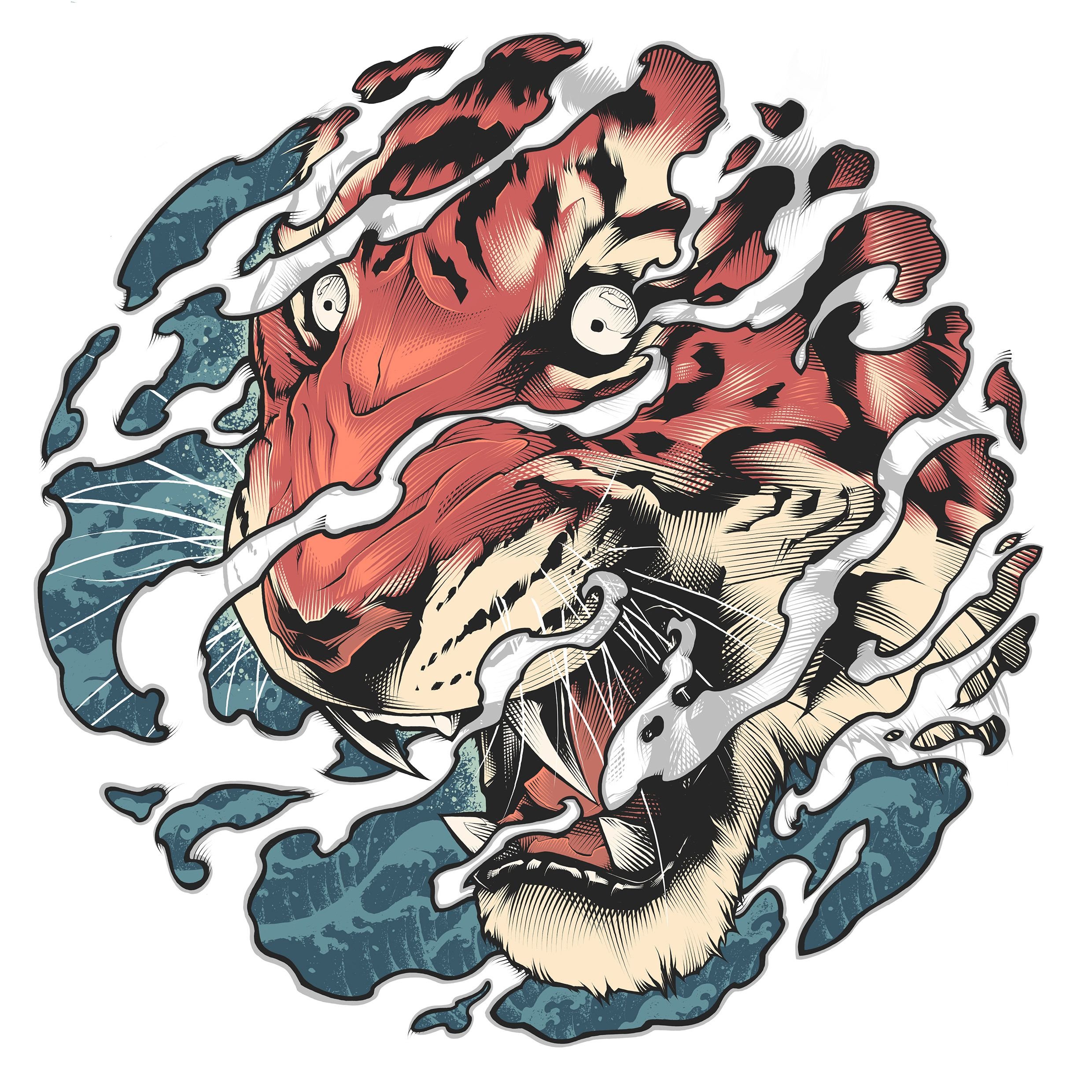 ![Тигр в японском стиле арт]()