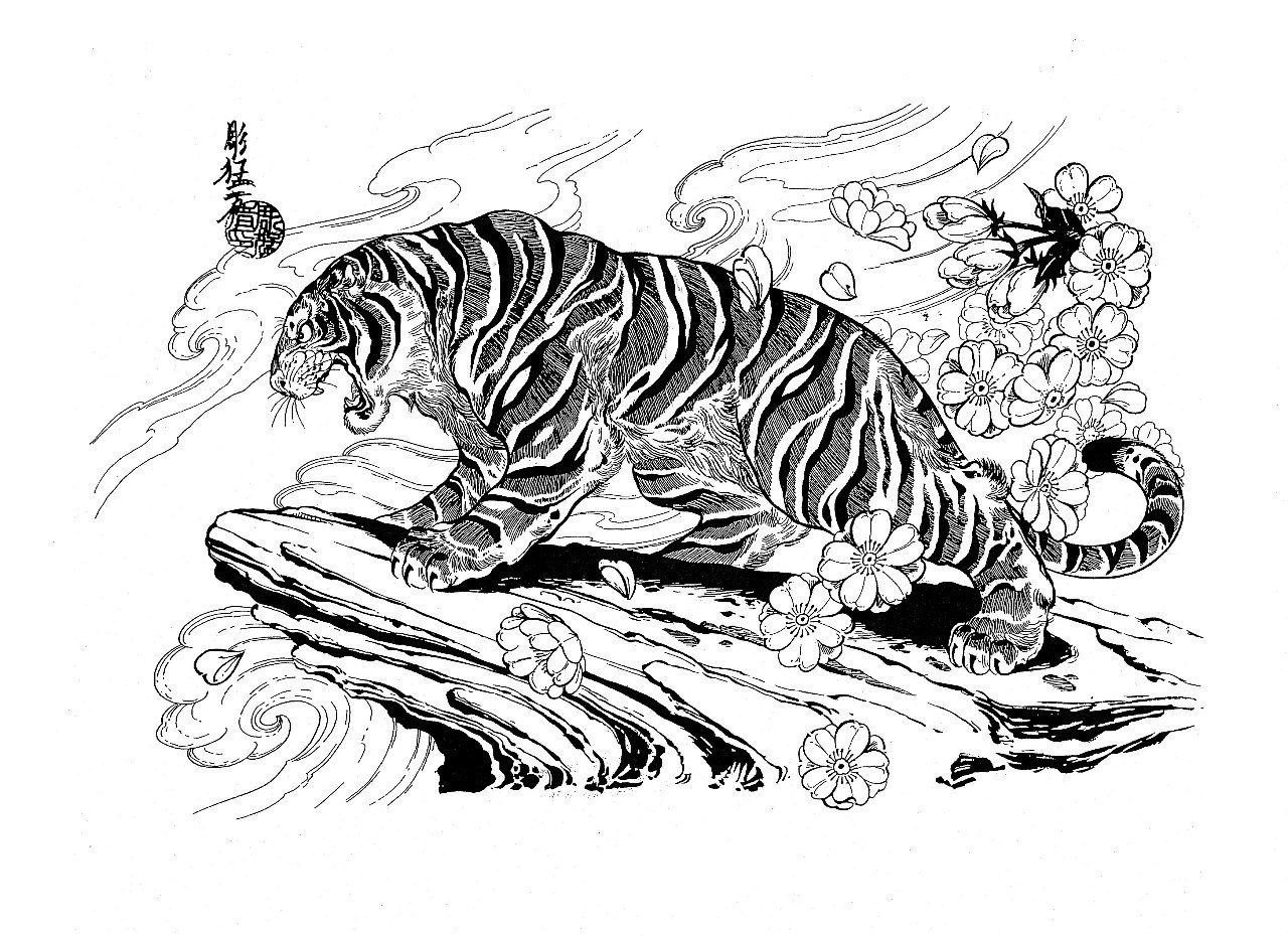![Ирэдзуми эскизы тигр]()