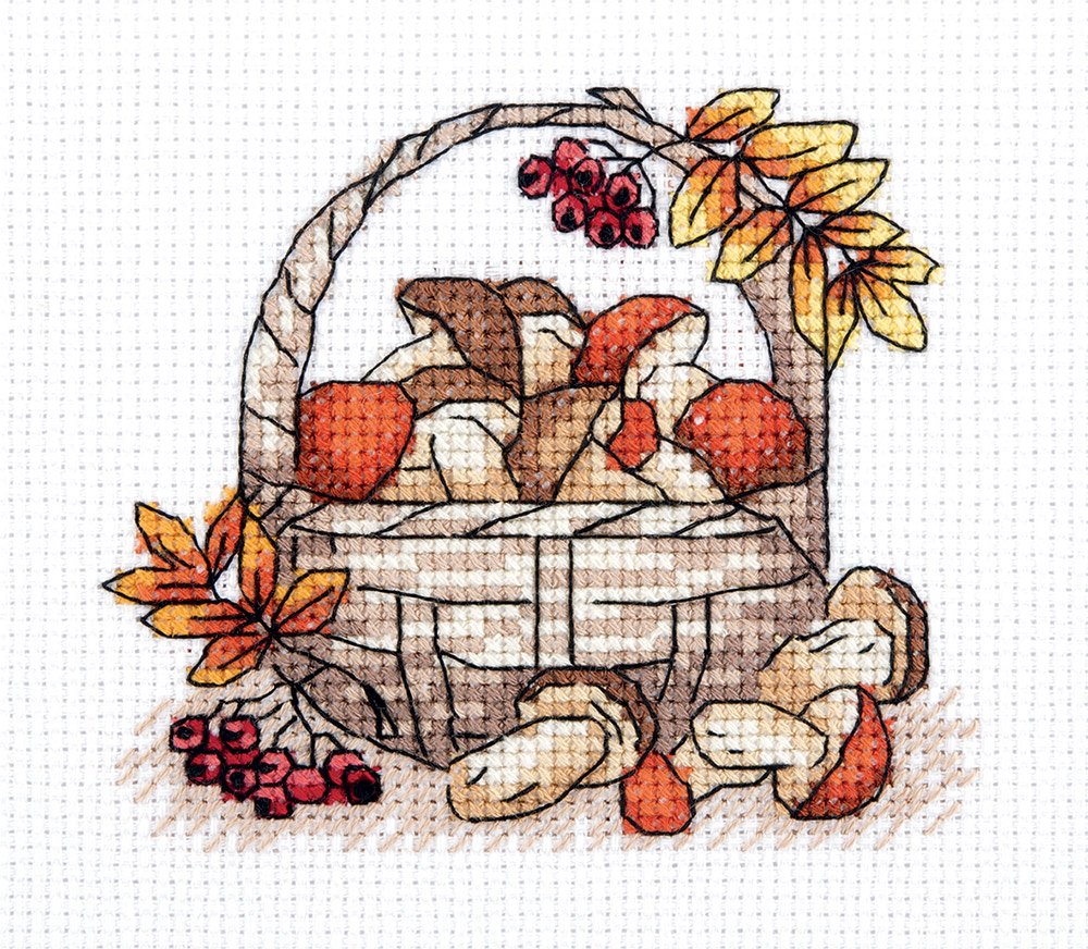 Натюрморт корзина с грибами