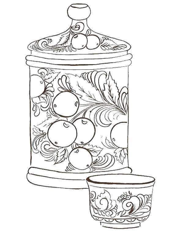 Раскраска посуда Хохлома