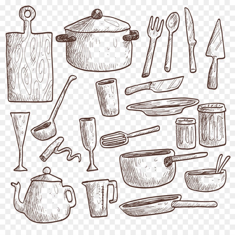 Кухонные принадлежности карандашом