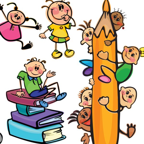![Мультяшные школьники]()