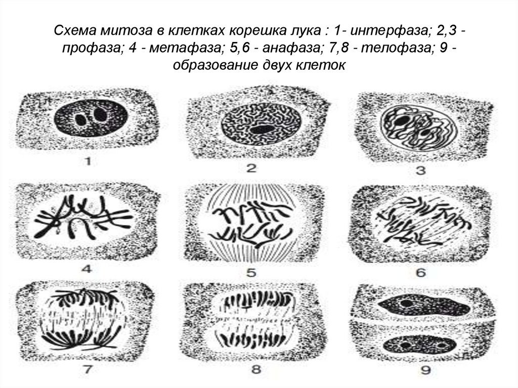 ![Схема митоза в клетках корешка лука]()