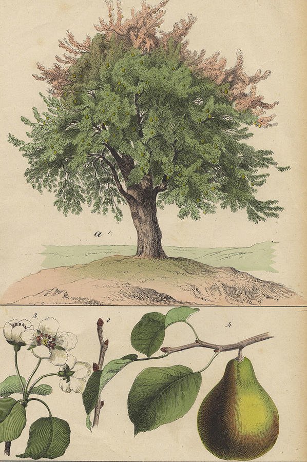 ![Грушевое дерево Ботаническая иллюстрация]()
