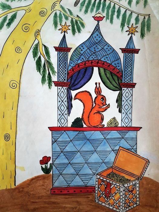 ![Пушкин сказка о царе Салтане белка иллюстрации]()