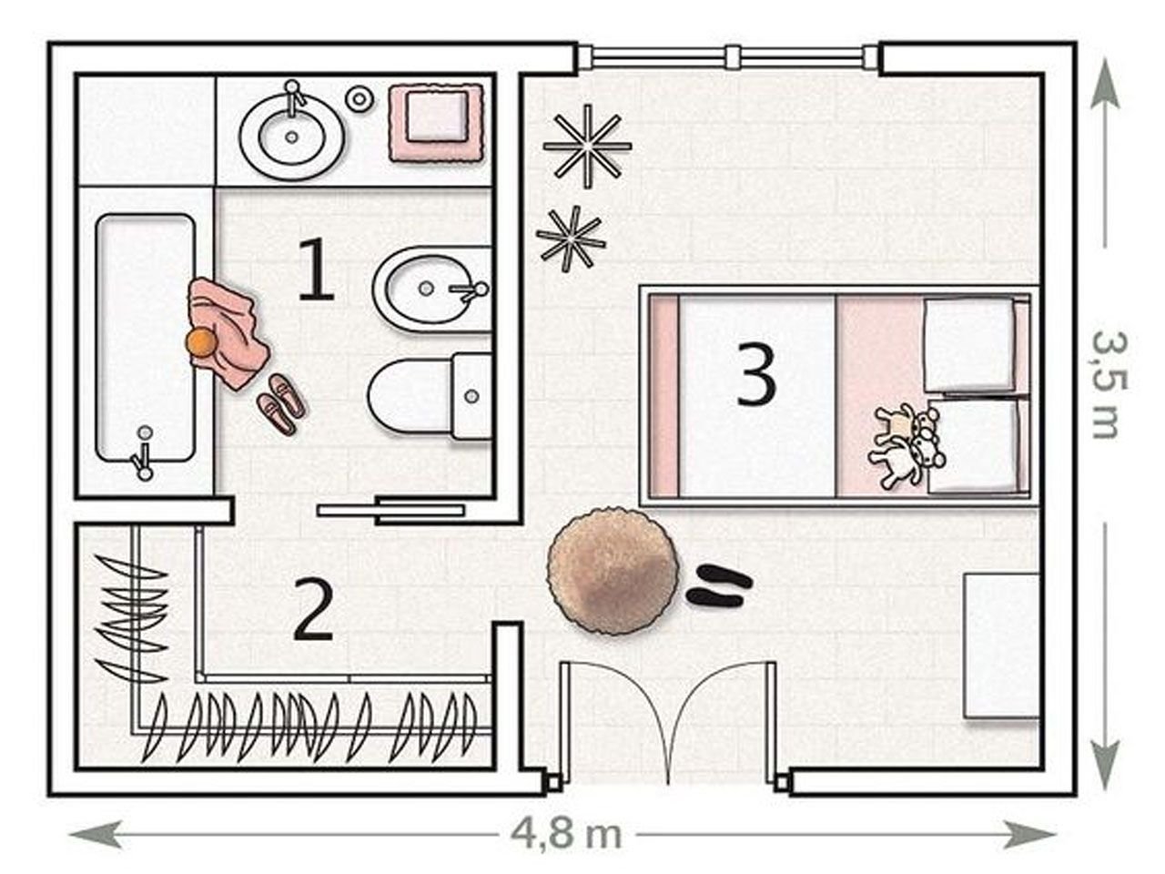 ![Однокомнатная квартира план сверху]()