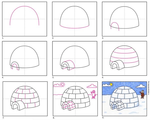 Иглу - это традиционное жилище эскимосов, которое представляет собой конусообразную постройку из снега. Иглу создается путем скручивания блоков снега и укладывания их в спиральную форму, что обеспечивает прочность и устойчивость сооружения. Внутри иглу имеет круглую или овальную форму и обычно разделена на несколько отсеков для размещения спальных мест и каминной печи. Рисунок иглу может быть выполнен в различных стилях: от реалистичного до абстрактного, и является популярным выбором для декорации интерьера или элемента дизайна. Он символизирует традиционную культуру и образ жизни народов Севера, а также является прекрасным способом передачи уютной и теплой атмосферы. Рисунок иглу может использоваться как настенная картина, печать на текстиле или элемент графического дизайна, добавляя неповторимый шарм и экзотический акцент в интерьере вашего дома или офиса.