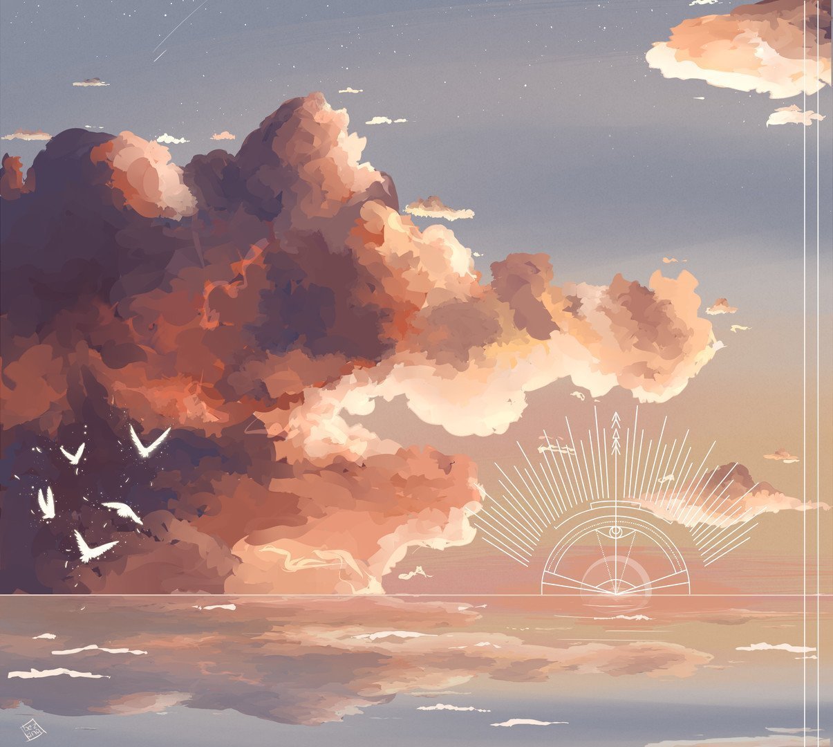 Закат со звездами арт