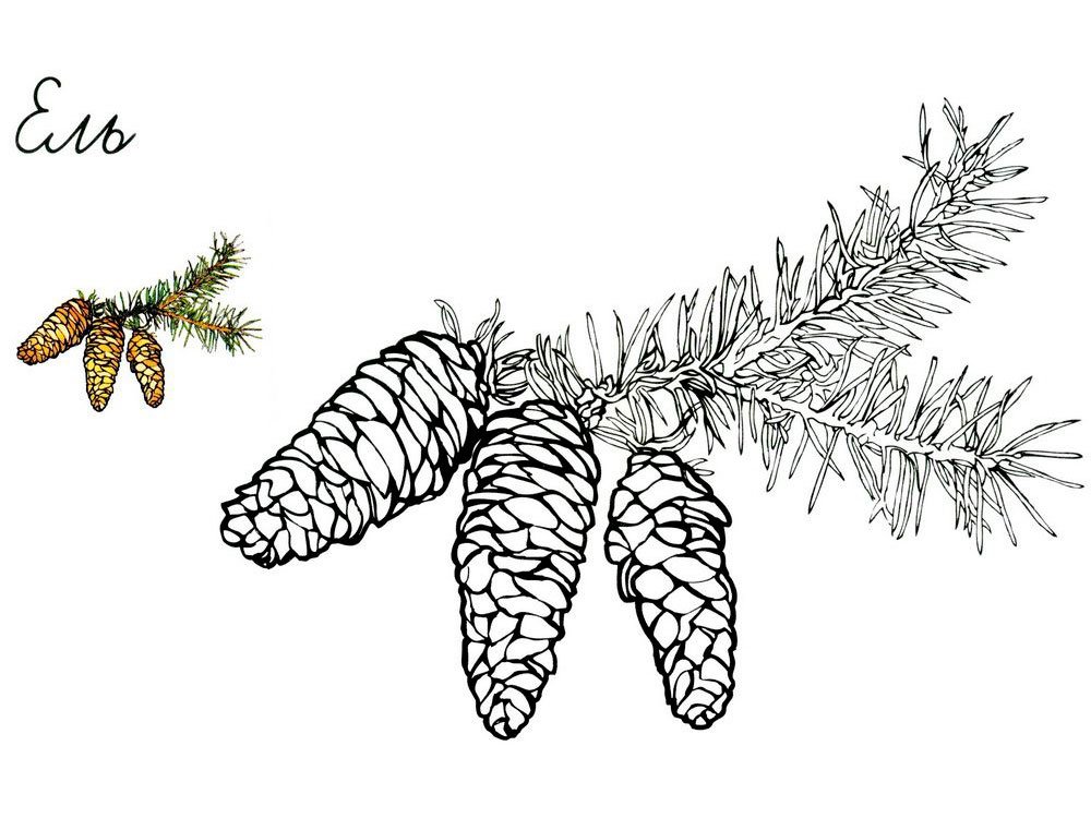 ![Ель обыкновенная хвоинки рисунок]()