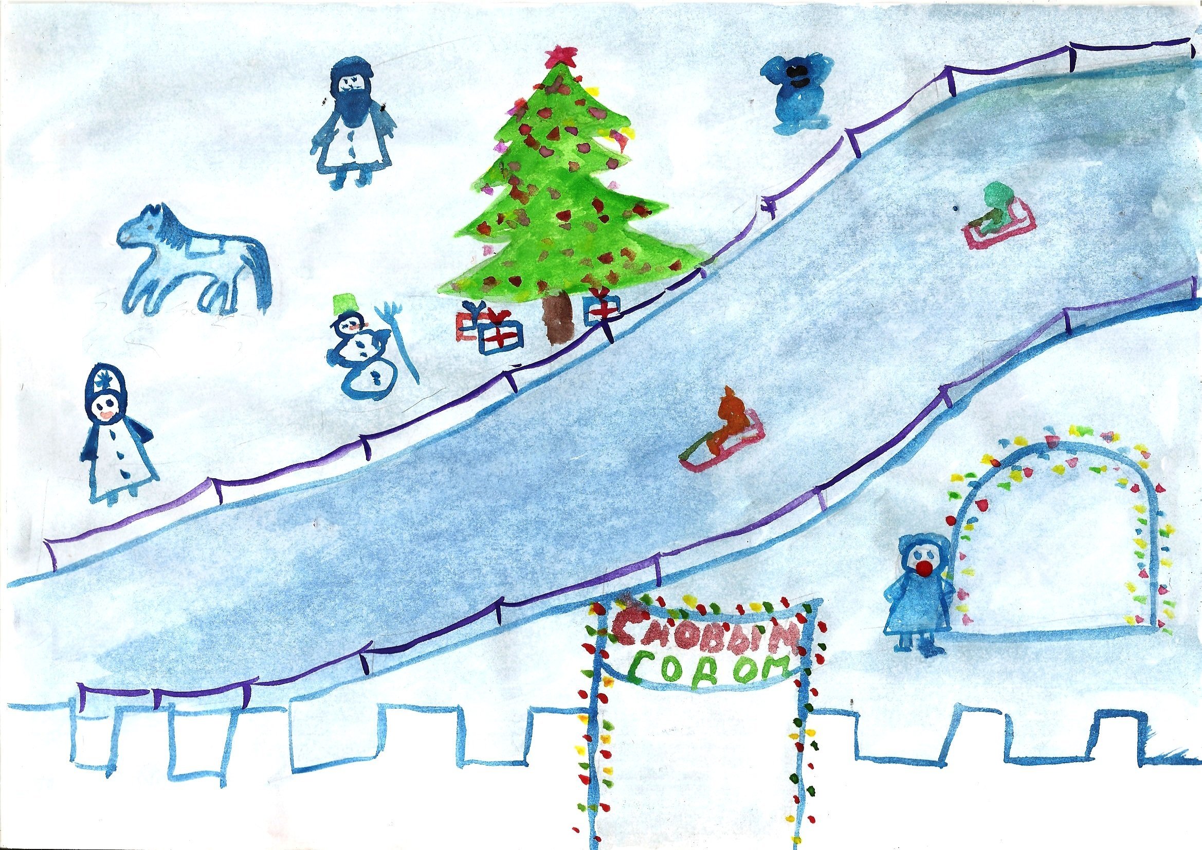 Рисование горка зимой