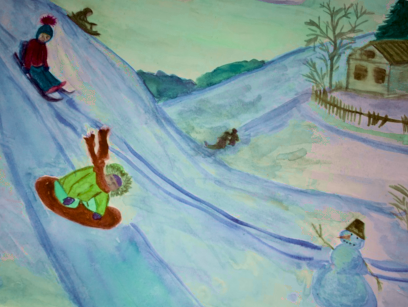 Рисование катание с горки