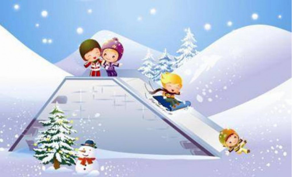 ![Фон зимние забавы для детей с горкой]()