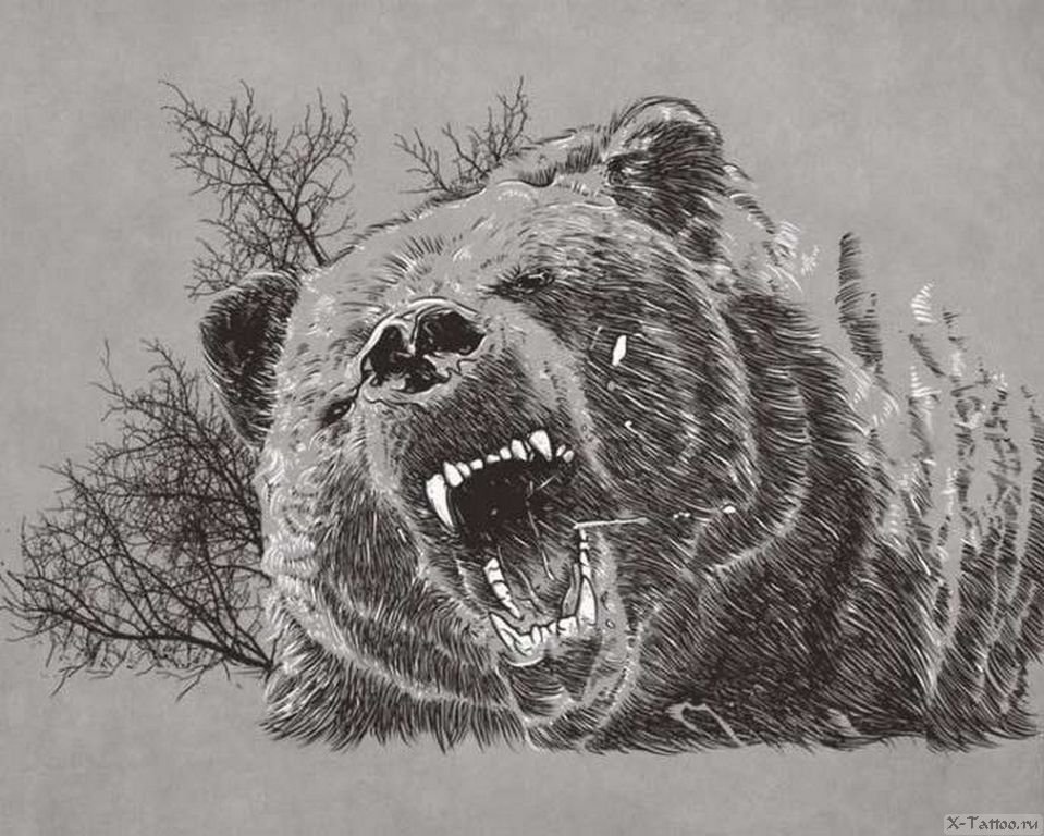 Оскал медведя тату эскиз