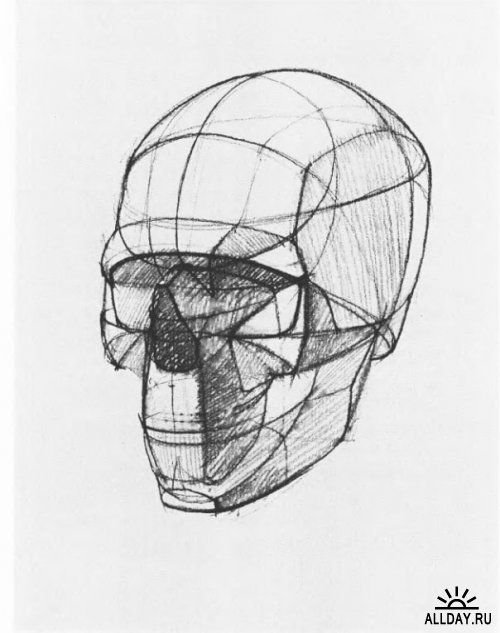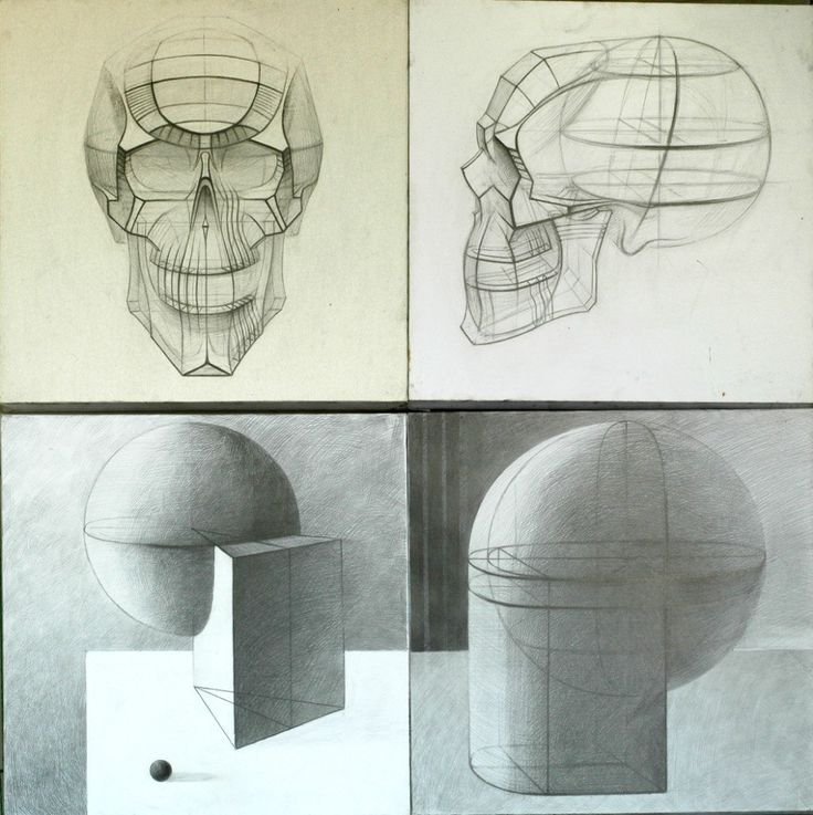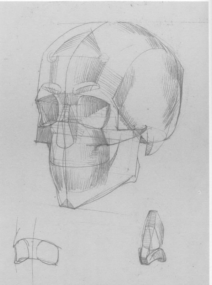 ![Построение черепа Академический рисунок конструктивное]()