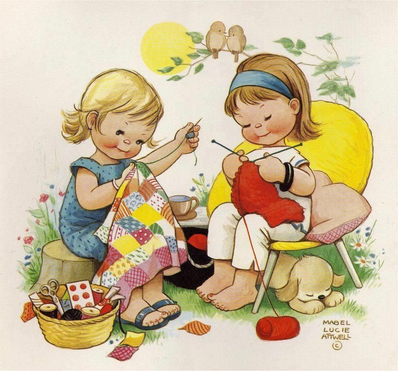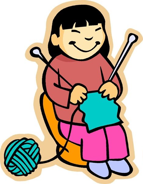 ![Мультяшная девочка вяжет]()