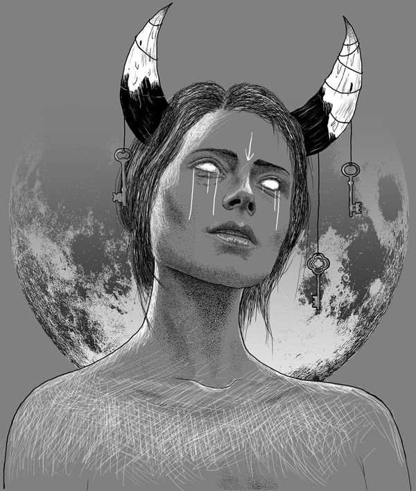Девушка с рогами рисунок