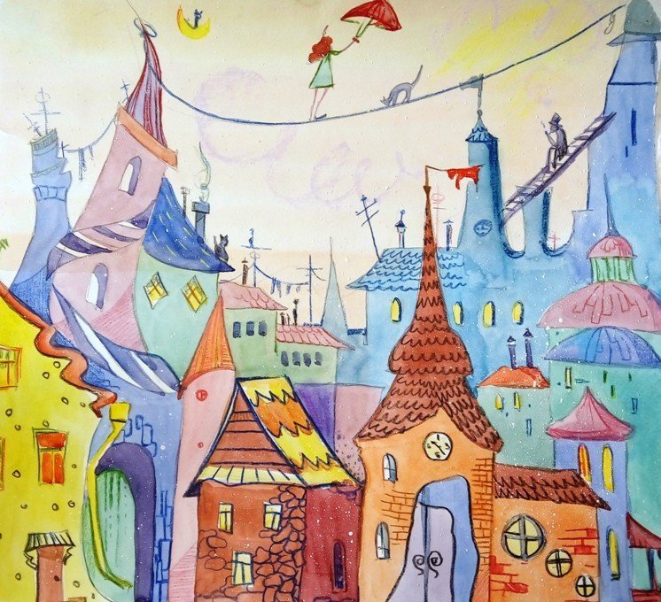 ![Сказочный город акварель]()