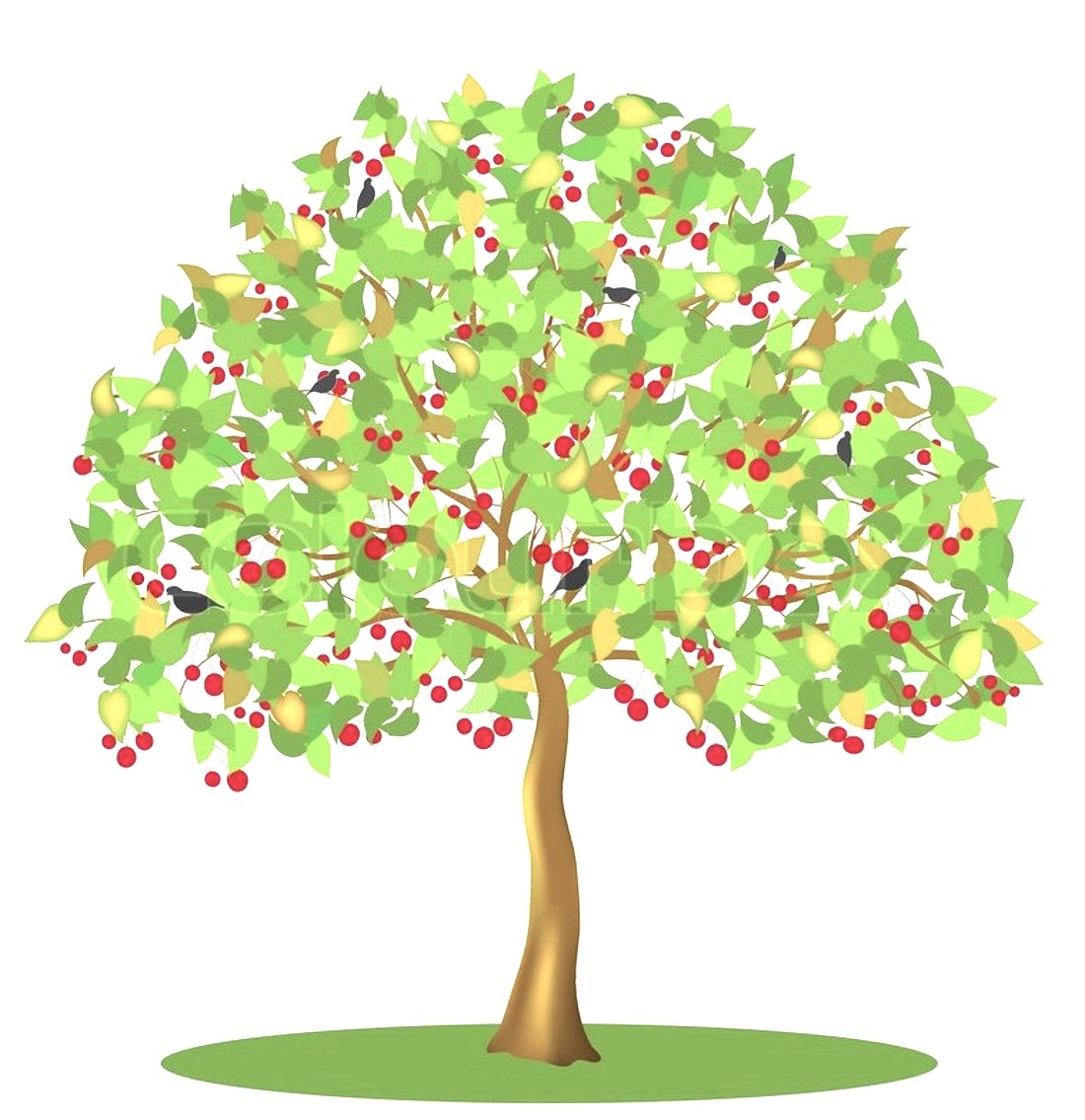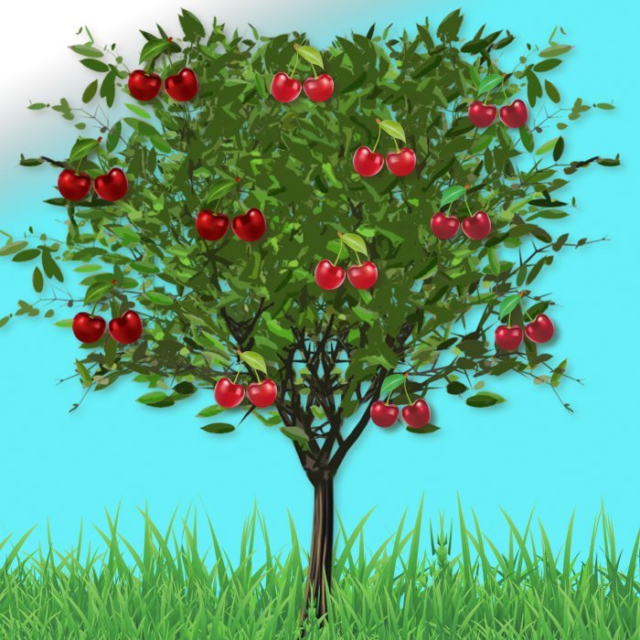![Нарисованное дерево с вишенками]()
