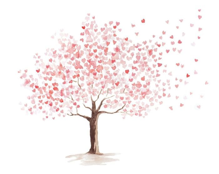 ![Цветущее дерево на белом фоне]()