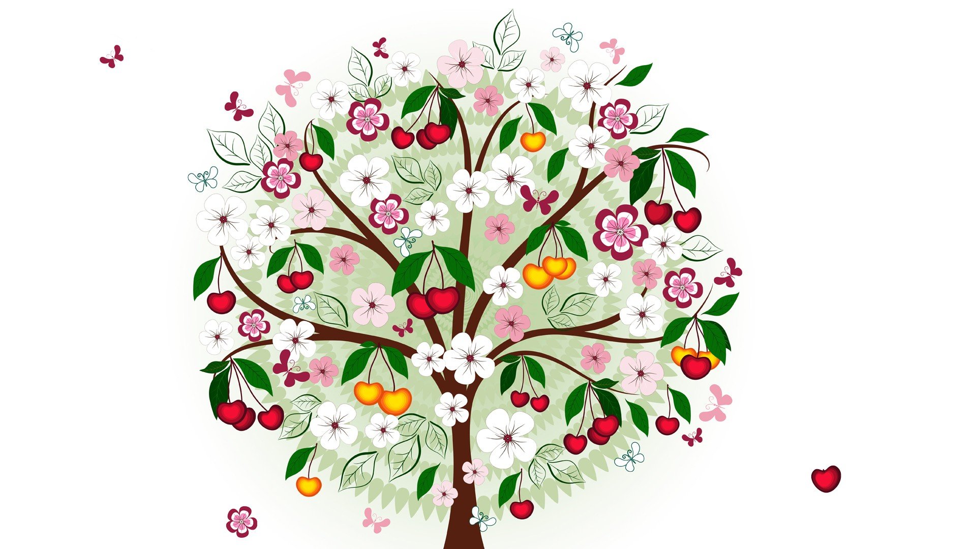 Нарисованное дерево с вишенками