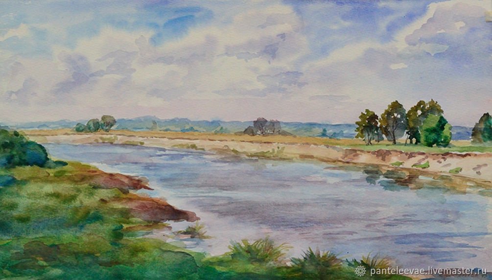 Река Ока акварелью