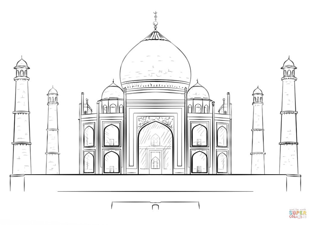 ![Раскраска храм Тадж Махал Индия]()