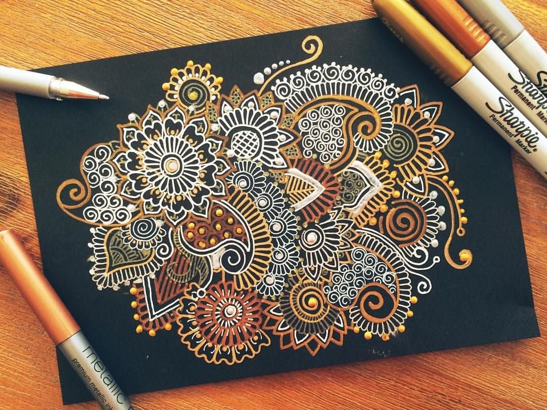 ![Сложные узоры фломастерами]()