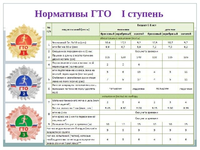 Первая ступень ГТО нормативы
