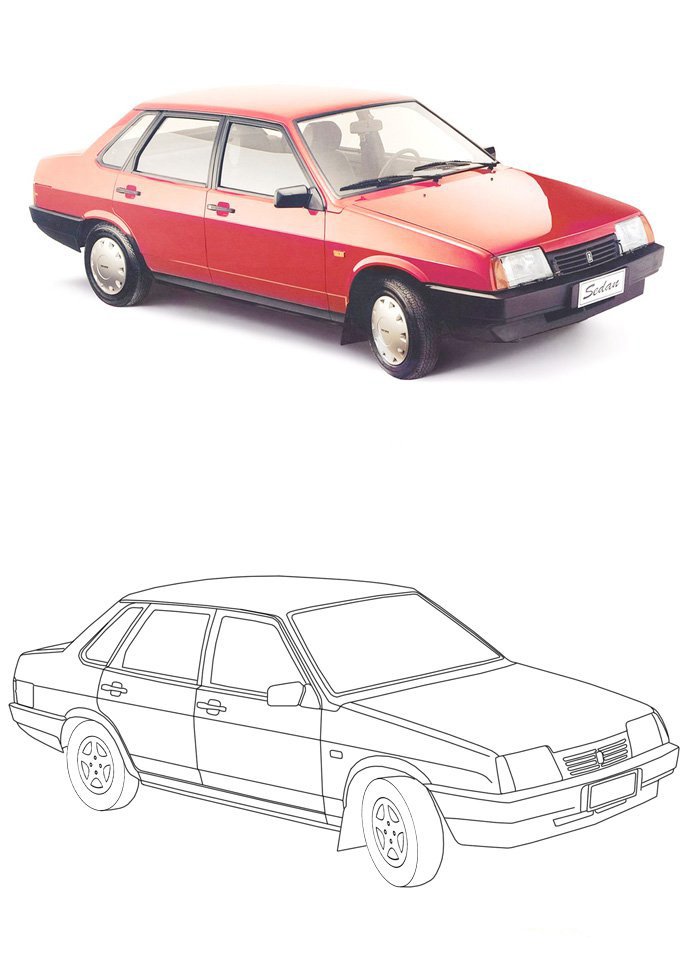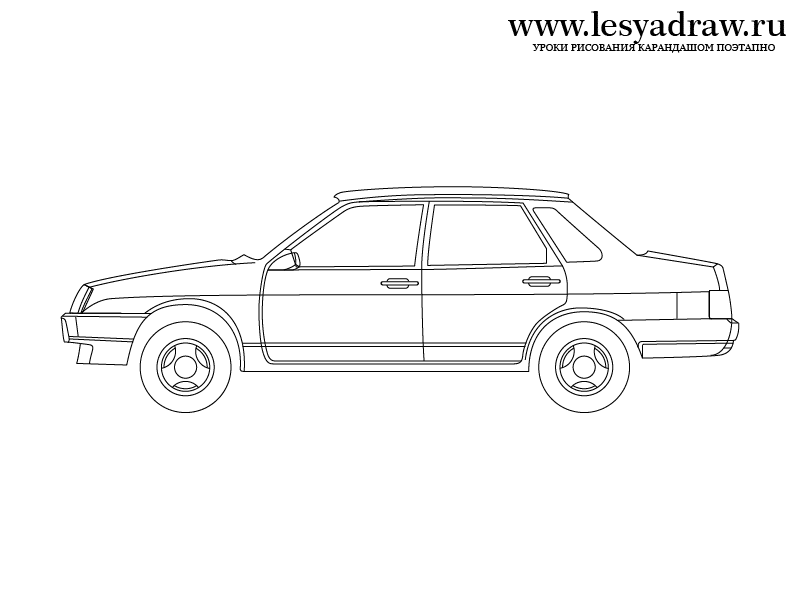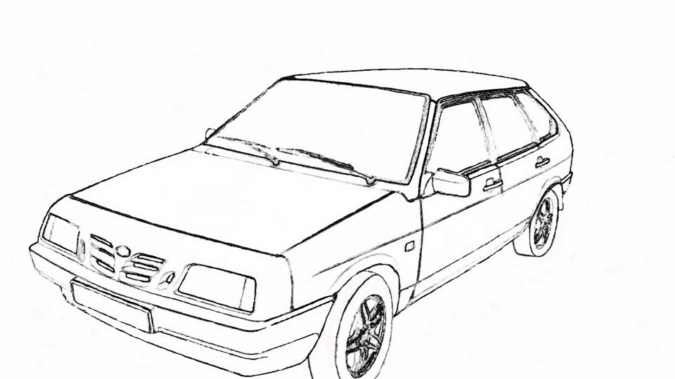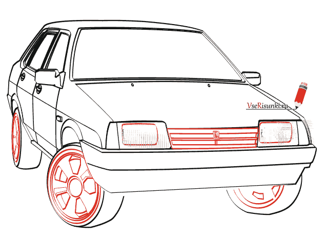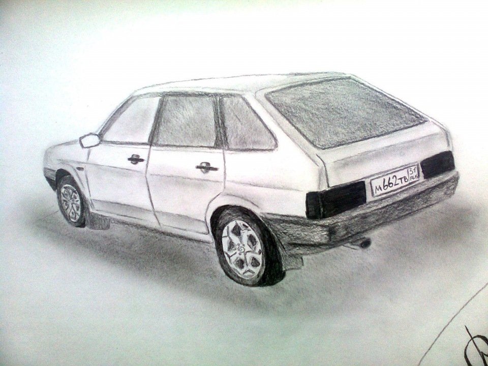 ![Рисунок ВАЗ 2109 карандашом спереди]()
