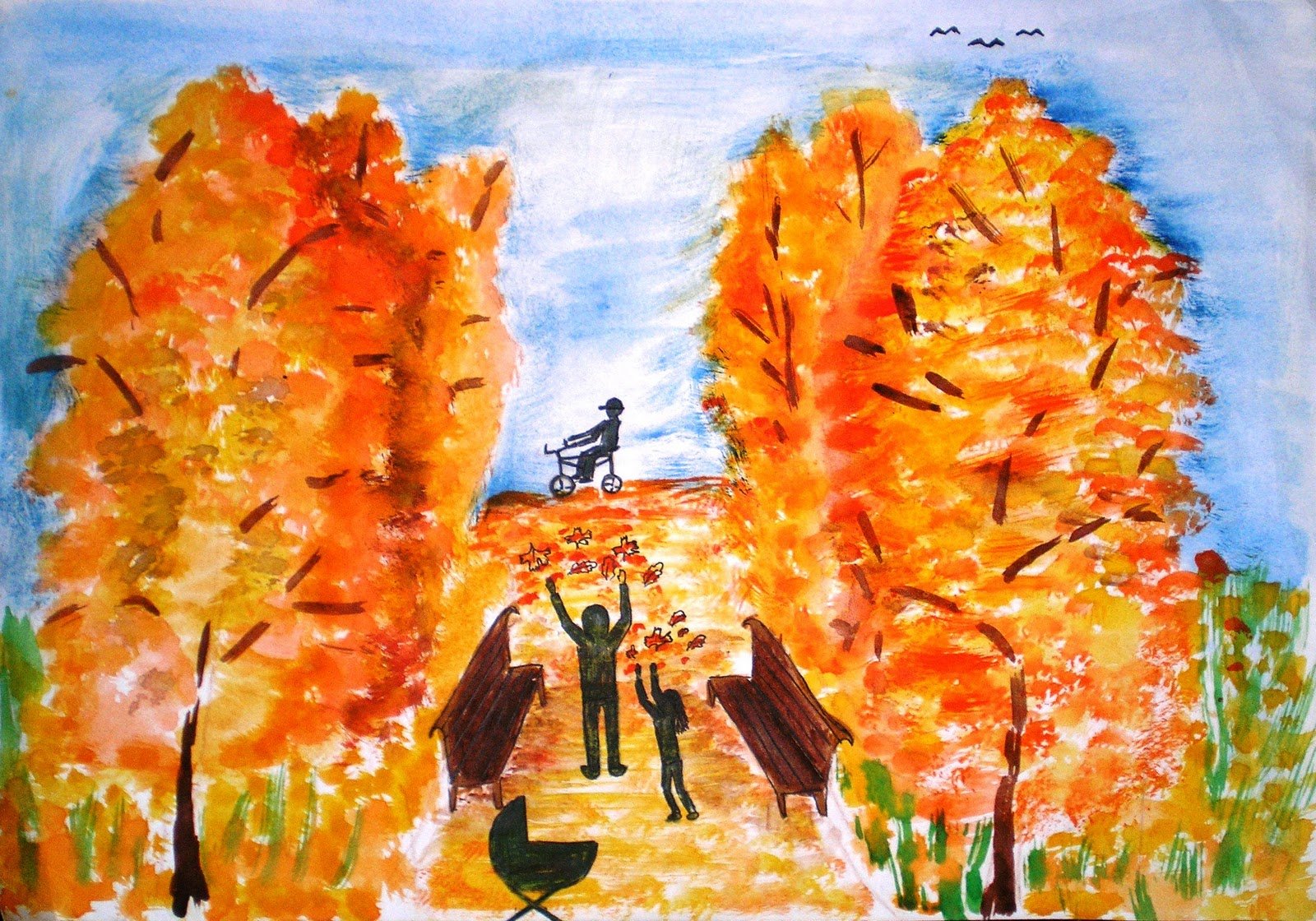 ![Детские рисунки на тему осень]()