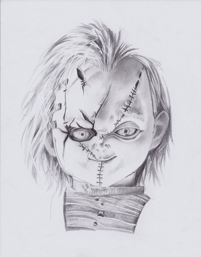 Рисунок куклы Чаки – это удивительное творение, которое поразит вас своей оригинальностью и детальностью. Каждая черта этой куклы передает ее уникальный характер и создает атмосферу загадочности и мистики. Бледно-желтая кожа, глубокие синие глаза и маленький красный рот делают эту куклу неповторимой и запоминающейся. Ее одежда, состоящая из разрезанных джинс и полосатой футболки, добавляет некоторую смущающую неопределенность. Рисунок куклы Чаки является идеальным выбором для любителей жанра ужасов и всего загадочного. Он станет отличным украшением вашего интерьера или прекрасным подарком для ценителя подобных творений.