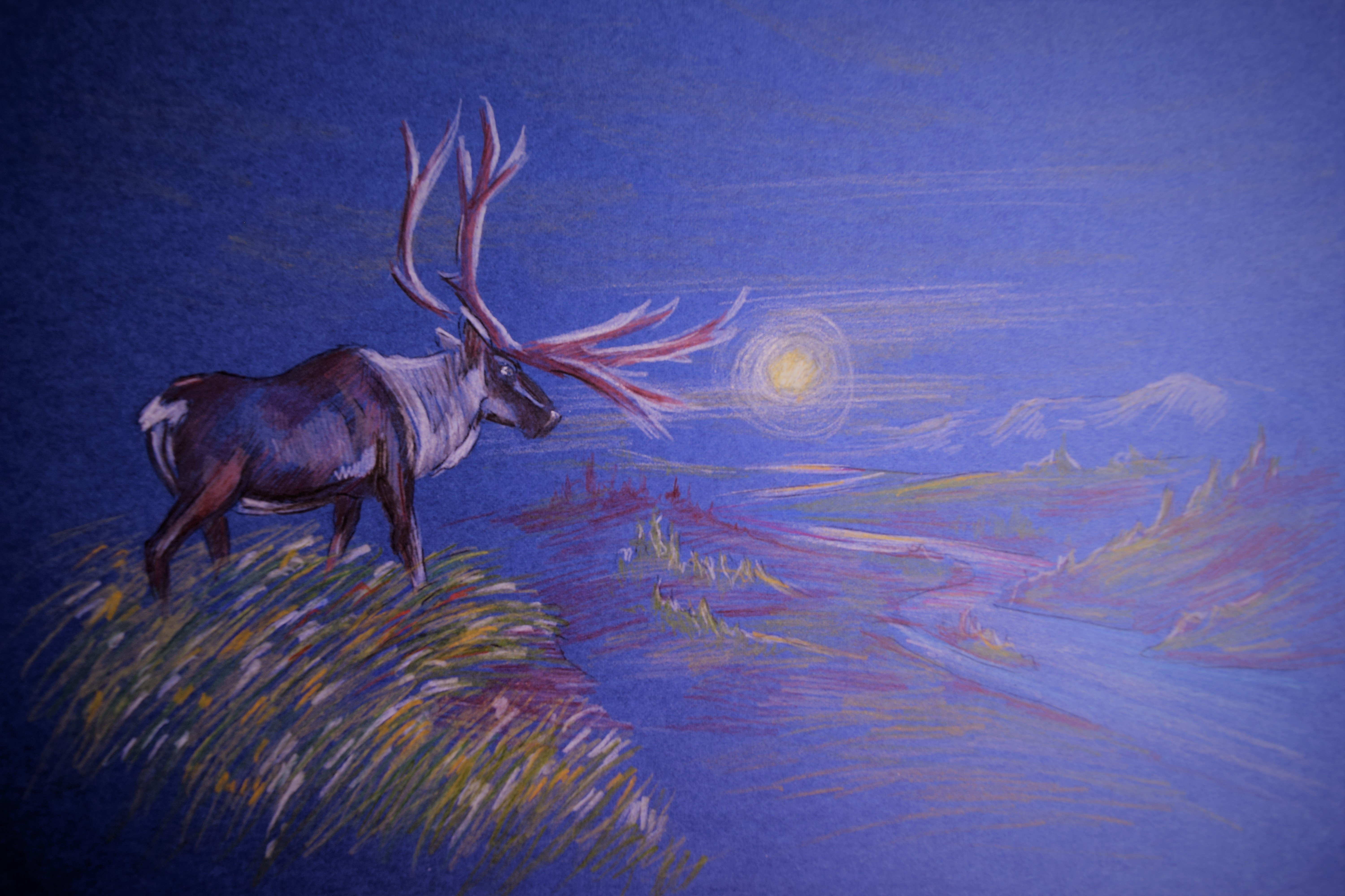 ![Северный олень карандашом]()